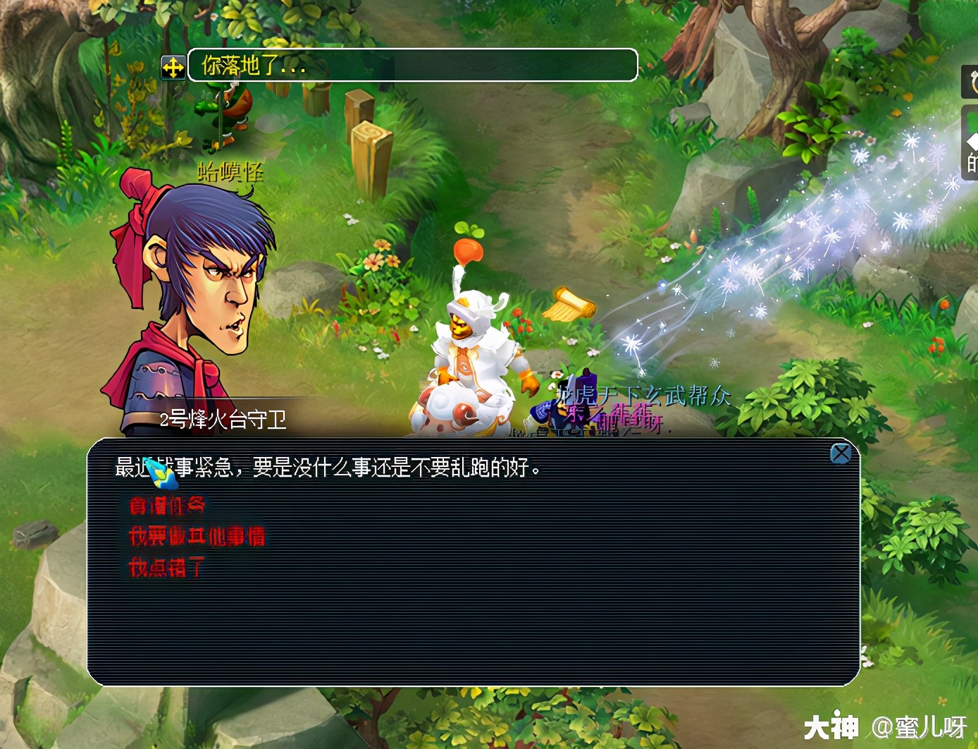 购买水仙后,送给二号烽火台守卫