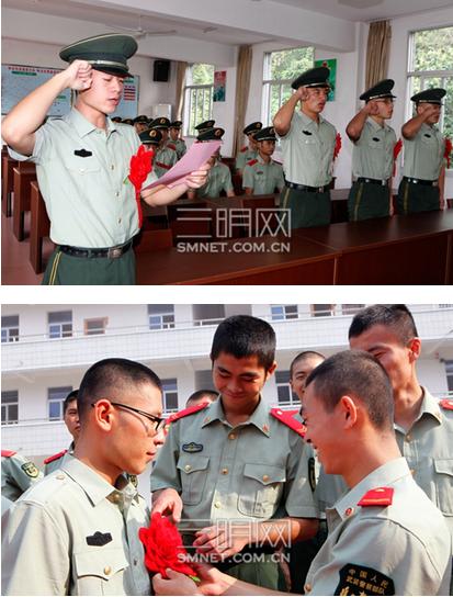 回忆回到两年前,在亲朋好友的祝福声中,他们带着一张远离家乡的车票,揣着“男儿何不带吴钩”的梦想,来到三明这块红色的热土。走的前一天晚上父母还在忙着帮他们去“寻梦”的孩子收拾离家的行囊,父母说了很多很多。那晚的情形就如那首军歌唱的一样“参军前的那晚上,兴奋又紧张,翻来覆去难入睡,索性下了床,父亲悄悄来身旁,扶住我肩膀……”那晚让他们不舍的东西太多太多了,有父亲母亲,有邻里乡亲,有生长十几年的故乡,有叫“旺财”的狗,还有那心爱的姑娘,有……那晚那个懵懂少年长大了,懂得了感恩,明白了不舍,也知道了路要自己走。一朵红花别胸前,火车的轰鸣声,把临行前的交代打断了,车厢外的背影越来越渺小了,军旅之路开始了,去到了一座陌生的城市,也可能会是在山沟沟里。