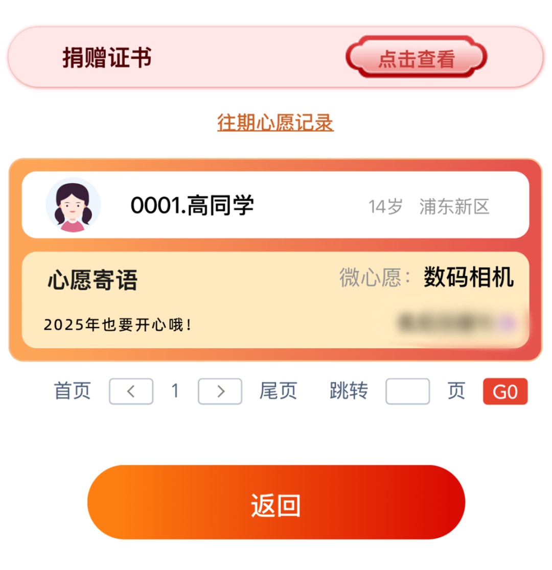 3.请在确认页留下您对这些心愿小主人的寄语;