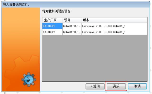 点击关闭即完成设备描述文件的导入。