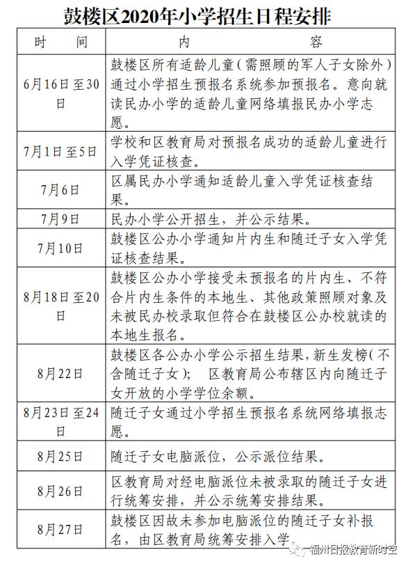 鼓楼区随迁子女填报志愿与录取时间按日程安排表进行。