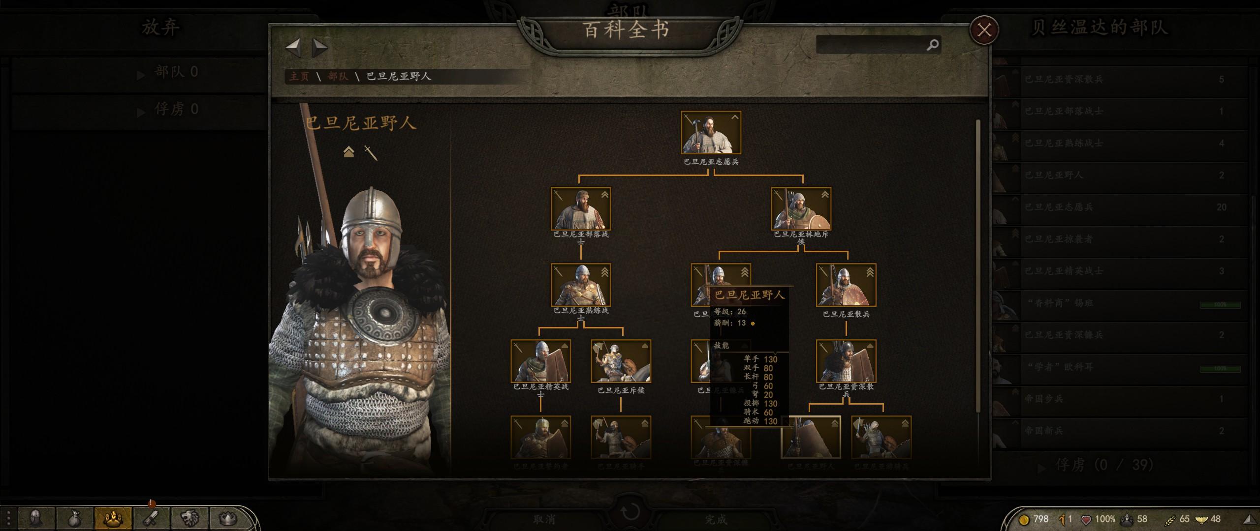 游戏中让玩家不适的不但是高级兵种偶尔谜一般的战斗实力,并且请不要以为兵种等级优势可以弥补数量优势,还是说到巴丹尼亚这个国家(笑,反面例子),最低级的志愿兵武器为钝器,在一定程度甚至打不过同等数量的劫匪,虽然俘虏的概率很高。高级兵种巴丹尼亚贵族士兵携带的是长弓加双手剑,虽然游戏中定义这个兵种为弓兵,但真近战起来,也是一轮一大片的狂战士,而真说起狂战士,就要说到斯特基亚代表性人物,斯特基亚狼头狂战士,这个兵种本身超高的双手代表着超高的伤害,但光个膀子什么情况,这岂不是弓箭手的活靶子,作为顶级兵种,前面进阶的兵种尚且穿着铠甲,怎么到这就脱光了,难不成是变秃了,也变强了(笑)。