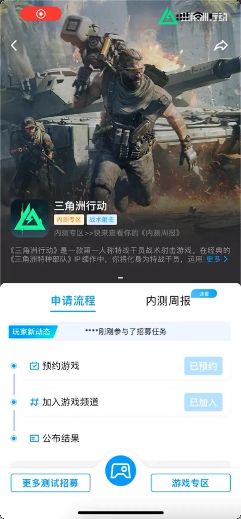 早在测试招募阶段,腾讯频道就为游戏安排了内测专区,玩家只需完成预约游戏以及加入游戏频道简单两步即可参与申请内测资格。