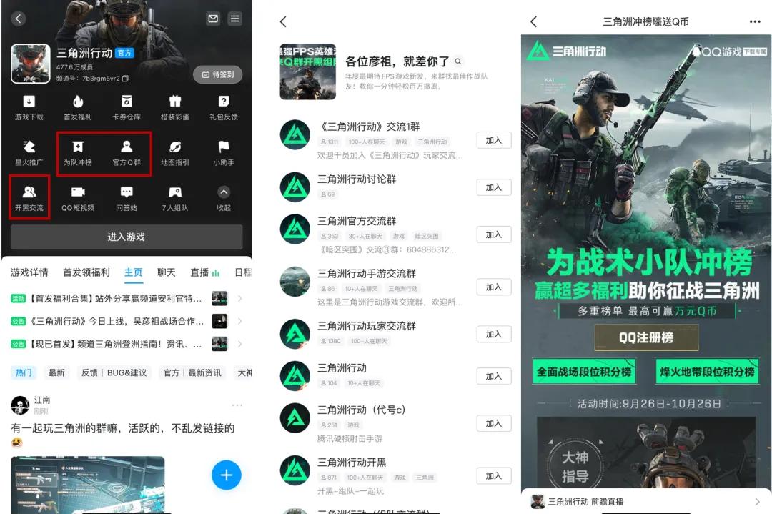 也就是说,玩家能够在更大的社交网中更轻易地加入讨论,闲聊斗图,乃至共同观赛、组队开黑。尤其是组织队伍的便捷工具,更易于深化玩家之间的社交关系(相信任何对“找开黑队友”有需求的玩家都深谙于心),进而加强其对社区对游戏的粘性。《三角洲行动》上线后层出不穷的组队攒局群,就是最好的证明。