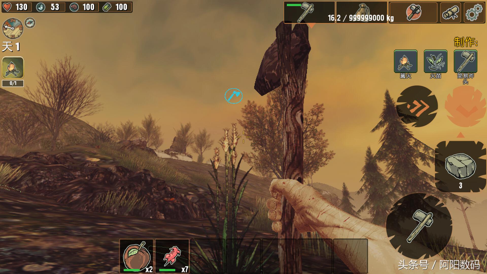 发现自己被被困在这里,地上有不少木棍和石头,我需要像祖先一样,制作出斧子来开路,逃离这个鬼地方