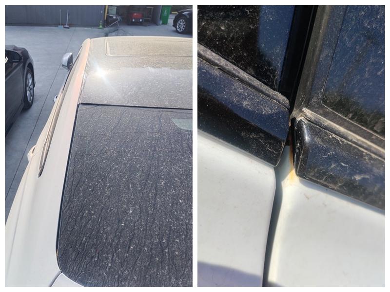 这两张照片一张是左侧车顶,一张是左后门和左后翼子板的缝隙,大家有什么发现吗?