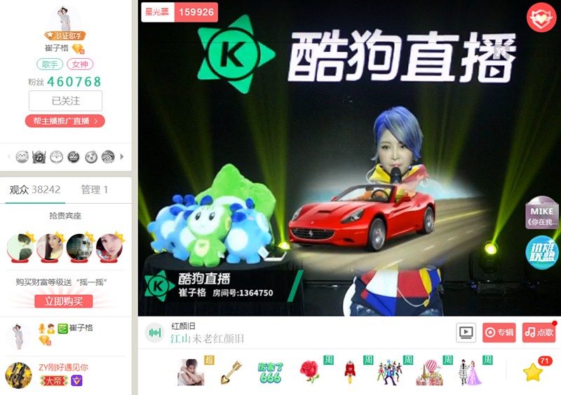 一个半小时,子格带来了《情未央》《再一次拥抱》《红颜旧》《可念不可说》等众多金曲,听得粉丝热泪盈眶。虽说演唱会在下周才正式启动,但崔子格在直播间这一连串的献唱,俨然一场别开生面的近距离接触演唱会。而在公屏上,除了对演唱的好评之外,众多粉丝都表示自己是在酷狗音乐听歌而发现崔子格正在直播,从而来到直播间围观的,看来酷狗音乐的生态链已经是“一条龙服务”了!