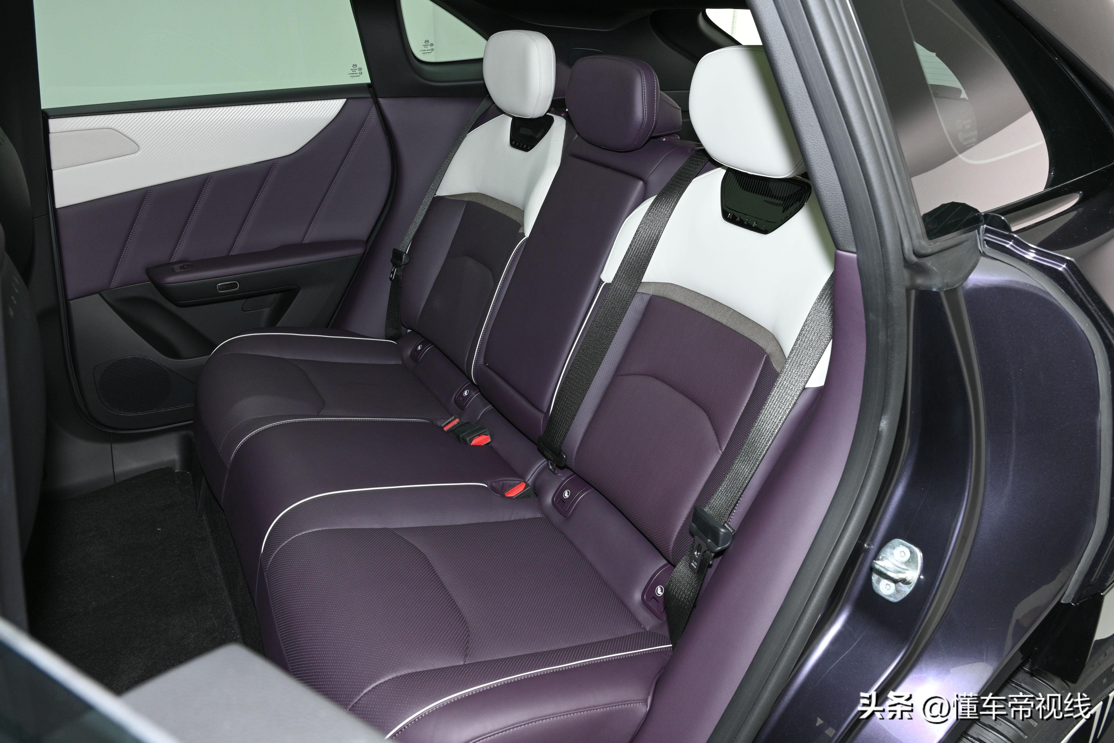 新车在副仪表台下侧采用镂空设计,可进一步增加储物空间。此外,实拍车型前排配备有双零重力座椅,采用白色和紫色双拼配色组合,标配通风/加热/按摩以及头枕音响配置。据悉,主驾座椅具备16向电动调节,副驾座椅具备14向电动调节,支持电动腰托和电动腿托功能。