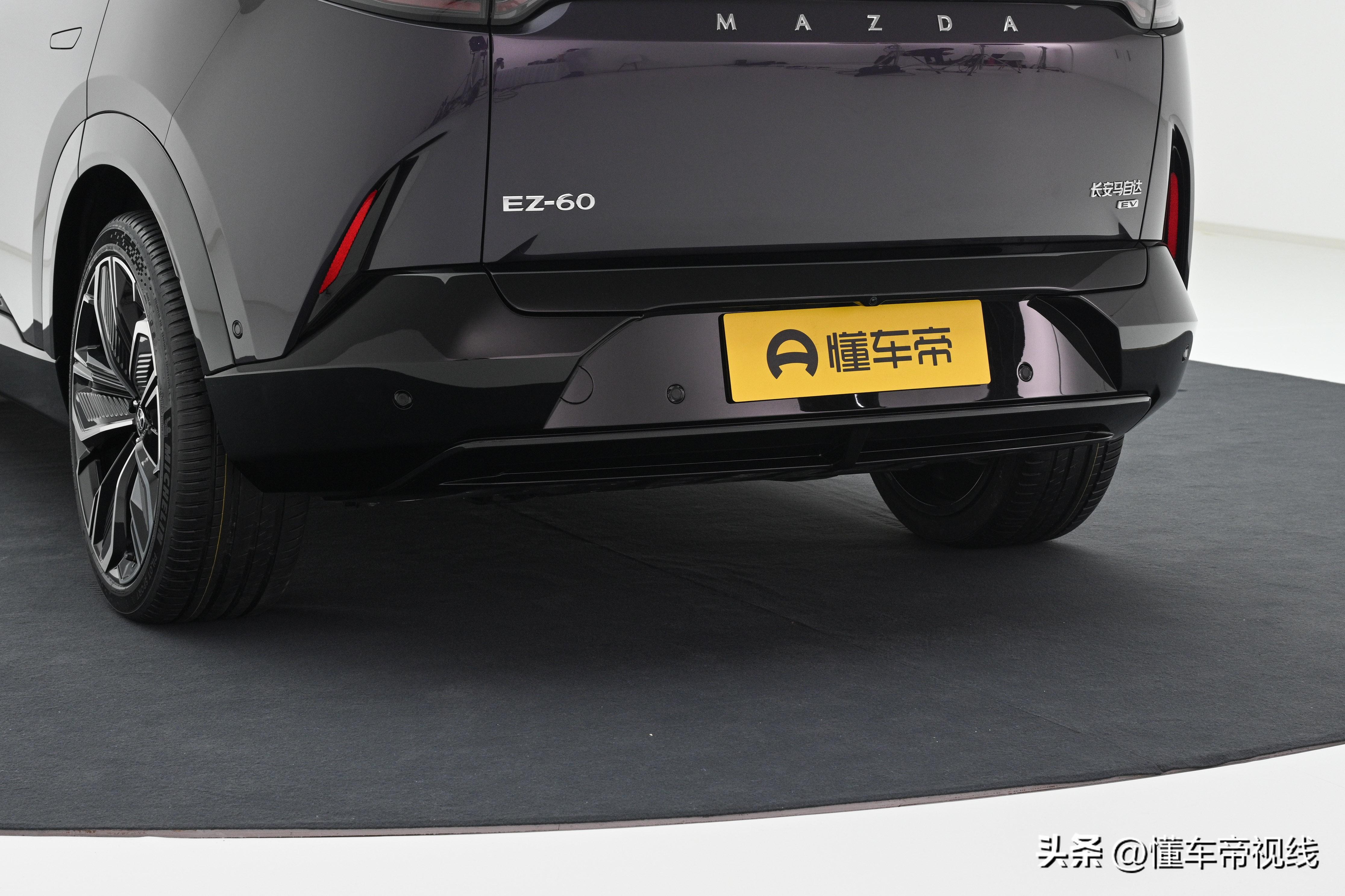 值得注意的是,新车尾门两侧“EZ-60”和“长安马自达”字样的标识表明身份信息,其中纯电车型加入有“EV”字样;增程车型没有其他标识,并采用隐藏式排气布局。