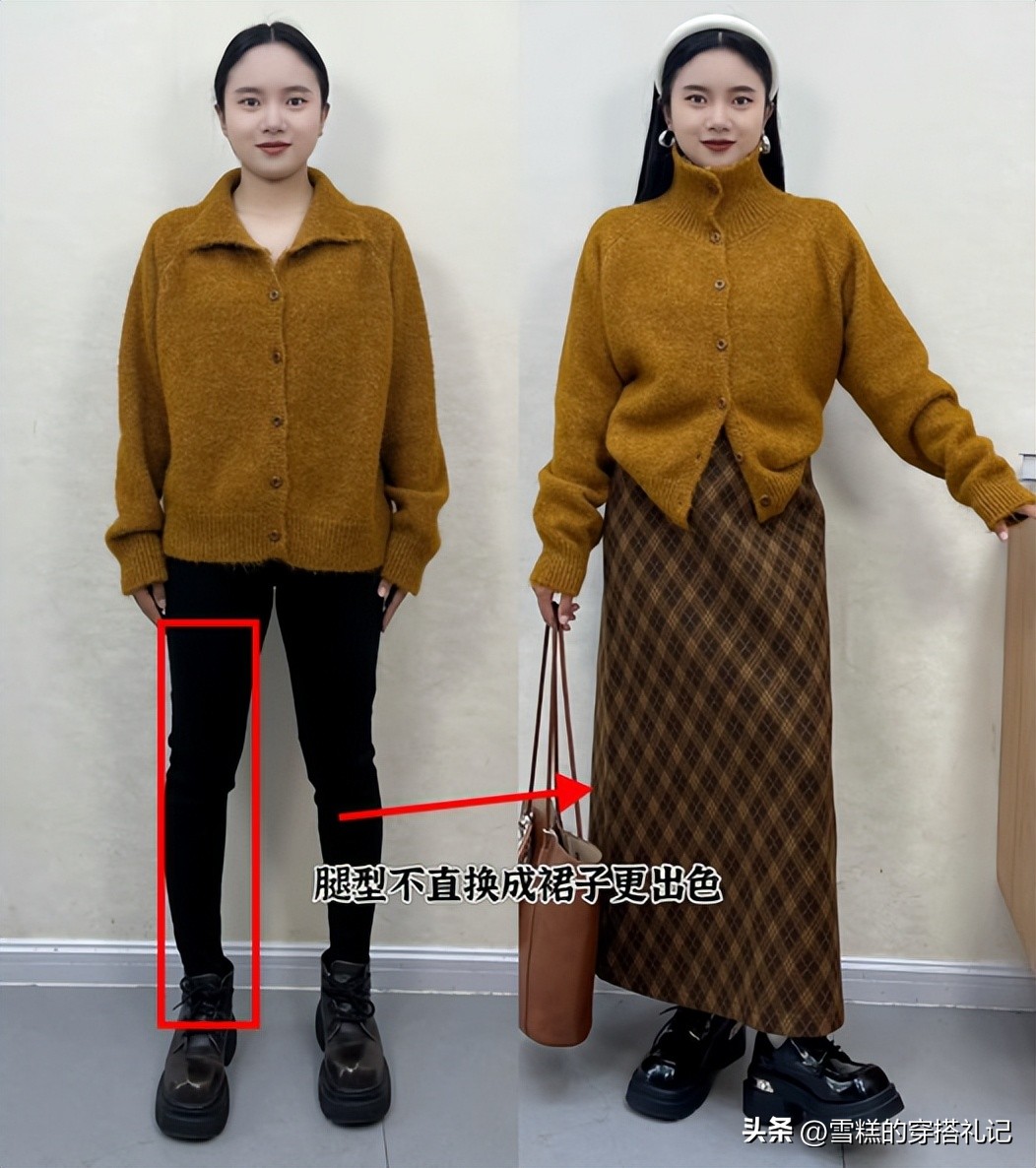 当有腿型不好,显得不够直且有点短的时候,建议不要穿裤子了,可以选半身裙来穿,这样腿型的问题都能遮盖,还能获得显瘦显腿长的下半身。