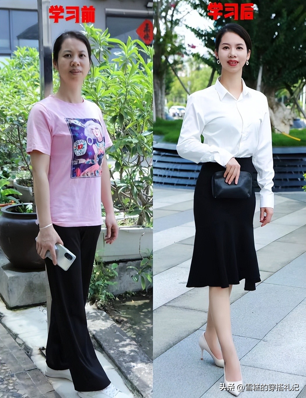 在气质和没有气质之间,想必大家都想是前者,这样能无形中变漂亮。一个女人的气质转变,就如同在外形象的无痛整容,从上面的对比图就可以看出,同一个女人,气质的变化,直接让颜值拉高高几个档次,左边女人是没有气质,有种扑面而来的普感,而右边女人形象气质发生转变,即使是简单的衣服搭配,都能给人留下很“贵气”的印象。