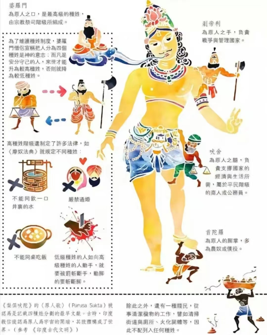 印度一部古老的书中将这种制度详细描绘了出了,“梨俱吠陀·原人歌”