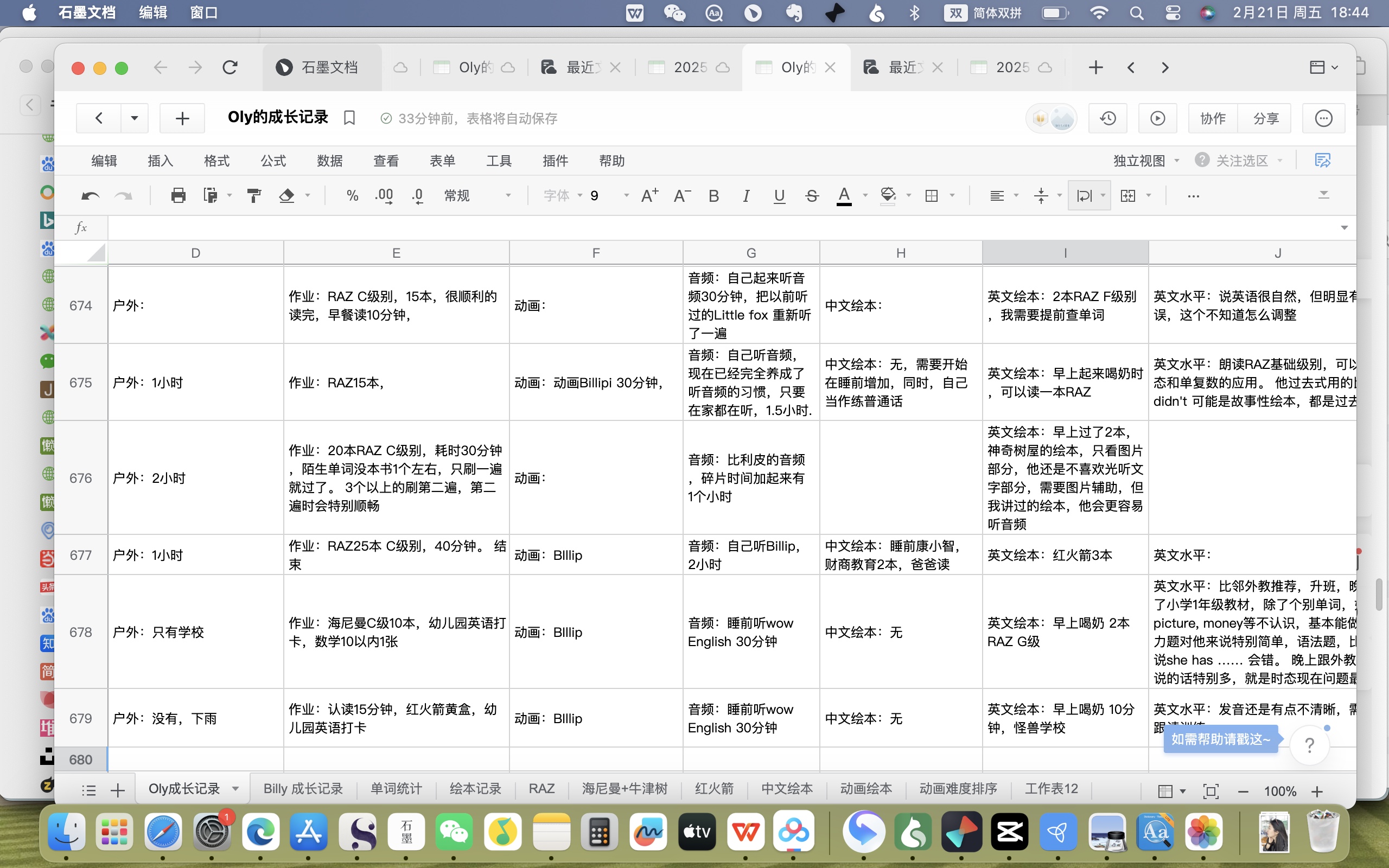 大概在儿子1岁8个月时,我开始每天记录他的成长内容,尤其是英语启蒙方面,我详细记录了,他每天听了什么歌,看了什么绘本,多长时间,他是否喜欢,新学的单词,新取得的进步,每天英语启蒙综合投入时间。