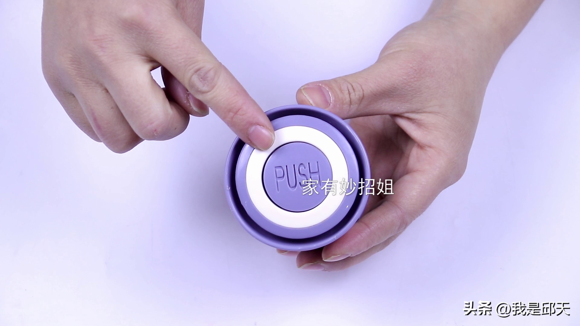 保温杯的内部清洁好了,密封盖也不要忽视了,在密封盖里面有着很多的缝隙,不清洁的话,缝隙里面就会堆满了水垢。其实这个密封盖是可以拆开来的,就比如我这个保温杯的密封盖,只要按住中间的圆圈部分,然后逆时针的旋转一下,就可以将中间的部分打开了。