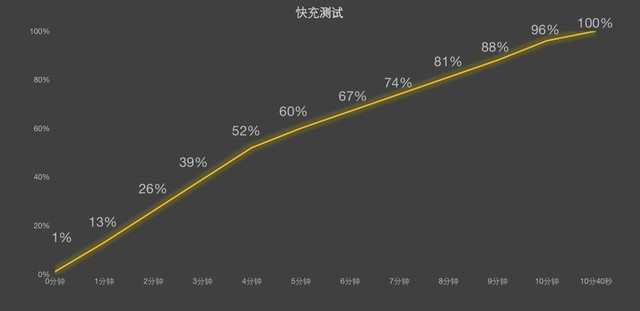 相比于10分40秒充满的成绩,我觉得5分钟补电到60%更加值得关注。这意味着快速回血真正成为现实,用户不再需要为手机充电而刻意等待,可以大幅提升用户的使用体验。