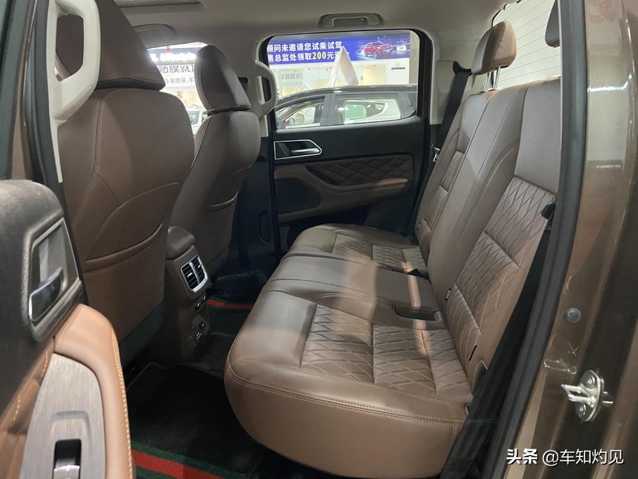 关于这台车的后排空间想必有不少朋友在关心,考虑到尾箱的纵深长度,长城炮乘用版并没有预留出较大的后排空间。以179cm身高的体验者为参考,腿部与前排座椅大概有一拳左右的余量,要比一般的SUV车型稍微逊色一些。
