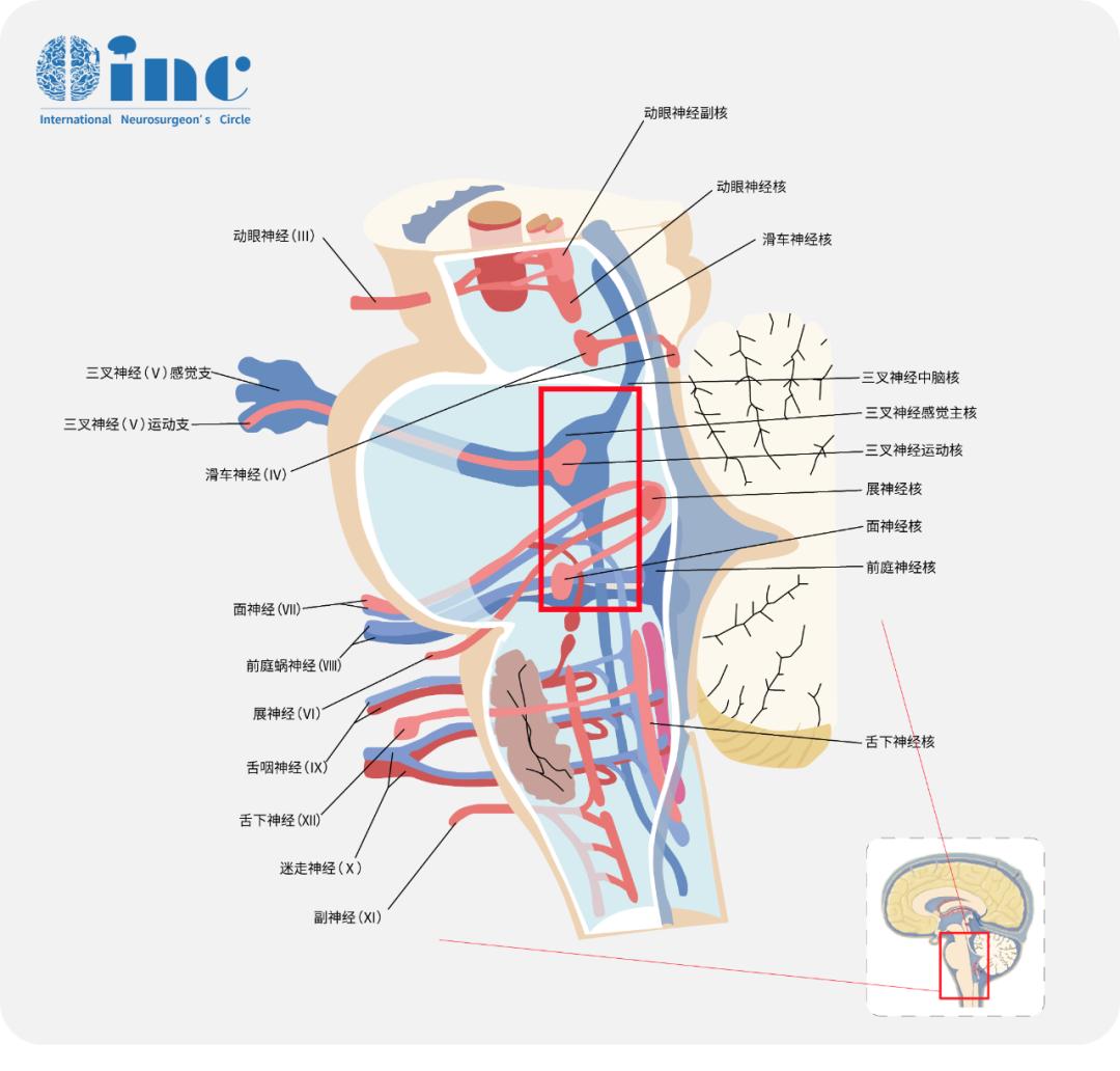 脑干中脑解剖结构复杂,中脑约为人拇指头大小,集合了人体所有的运动、感觉、意识等重要神经核团,肿瘤的压迫、手术损伤核团则会引起不可逆性的损伤。