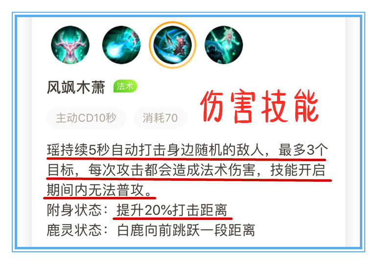 瑶二技能的核心关键词是:随机、5秒、3个、无法普攻、跳跃。