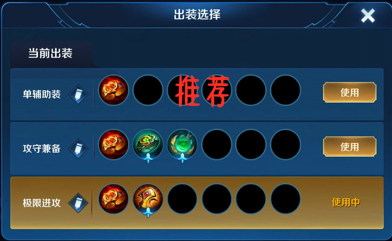 总结:从瑶的自身定位出发,优先级最高的是极影。如果还要再出一个辅助装的话,除了近卫荣耀以外,其它三件辅助装可以根据局势选择出。