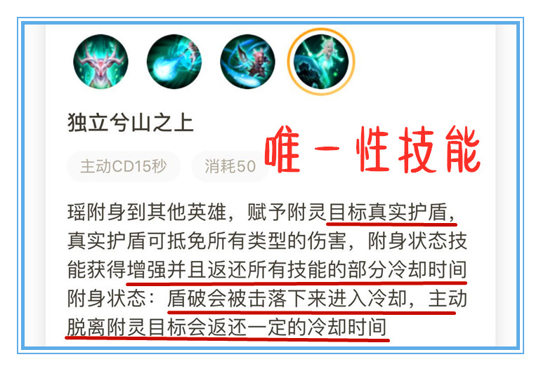 瑶三技能的核心关键词是:真实护盾、加强技能、返还时间、冷却。