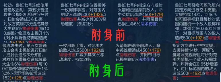 不管是附身前还是附身后,鲁班七号的技能伤害都是没有变化的。