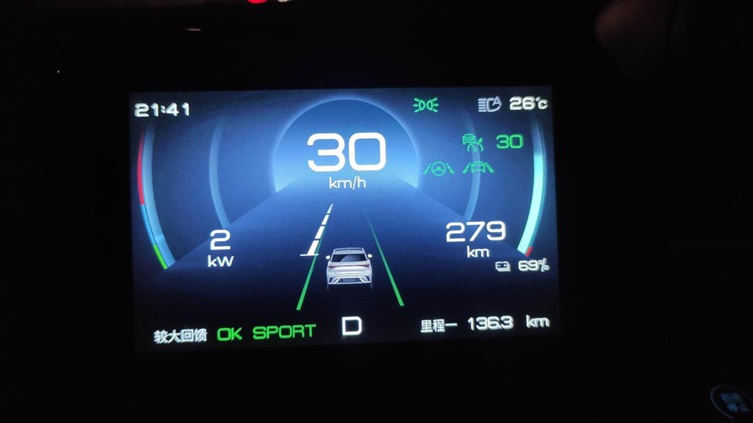 跟车距离系统还会自己判断,绿色表示距离OK,橙色表示有风险,红色表示危险,在城市使用驾驶辅助过程中,车辆动态反应偏慢,有明显时间滞后。