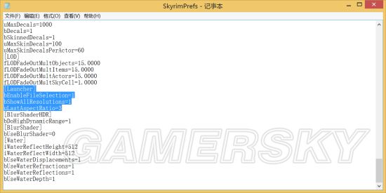 里面的skyrimPrefs文件