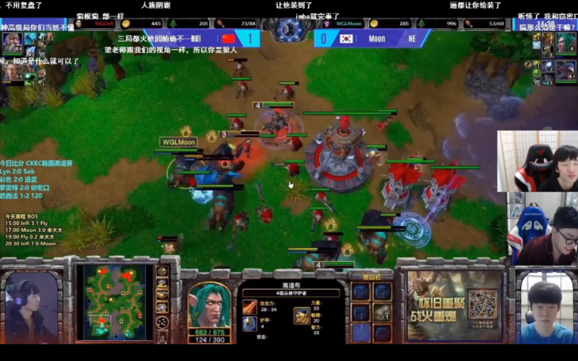 两位“宗师级”大魔王的上一次相遇,10月初的WCG2020八强淘汰赛,Moon用两盘兽王+1把KOG打了Infi一个3:0。如今仅隔2个月,两人的再次遭遇却已是“版本巨变”之后。
