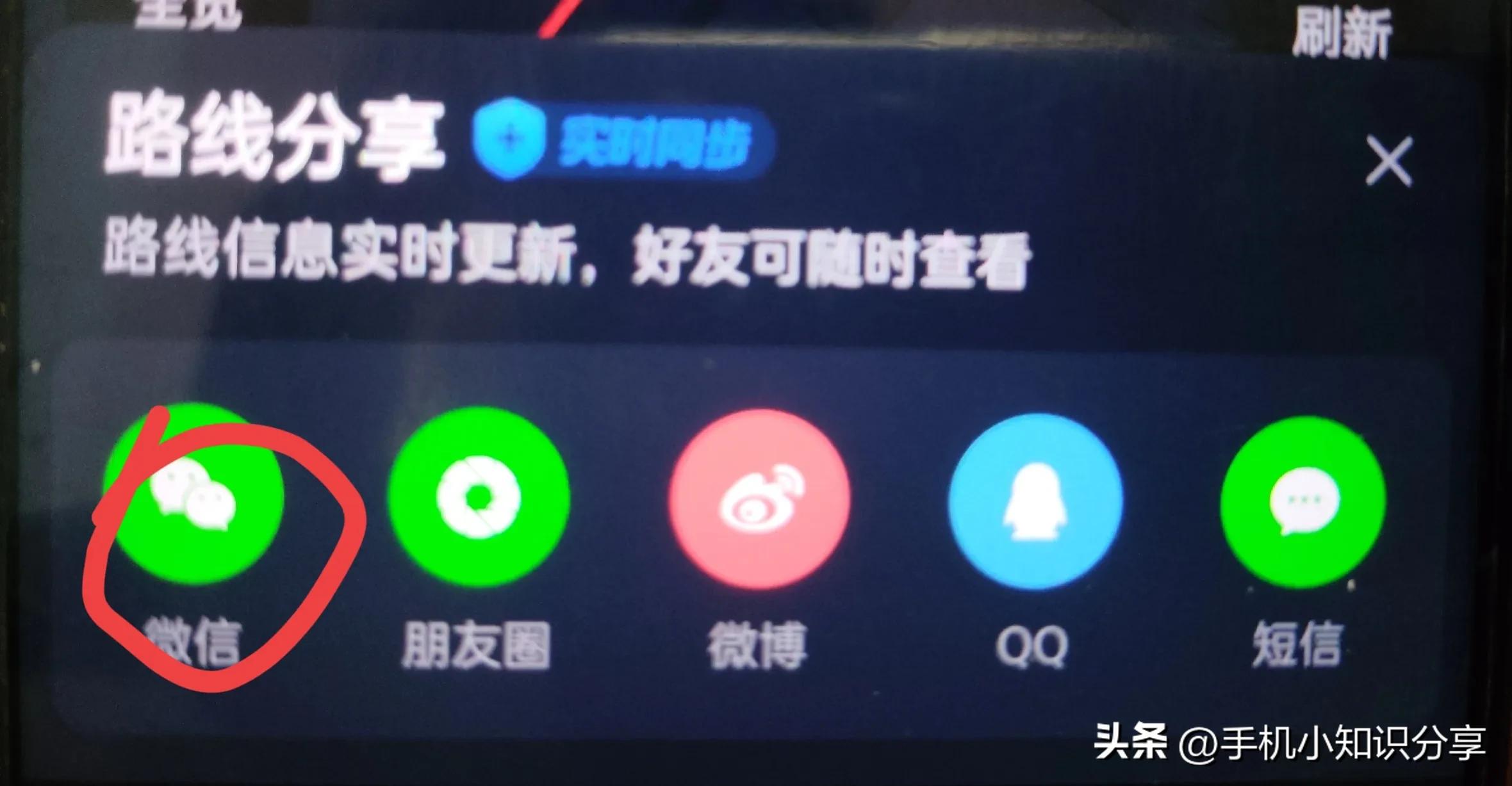 该路线信息是实时更新的,好友可以实时查看。我们点击微信,(如上图所示)