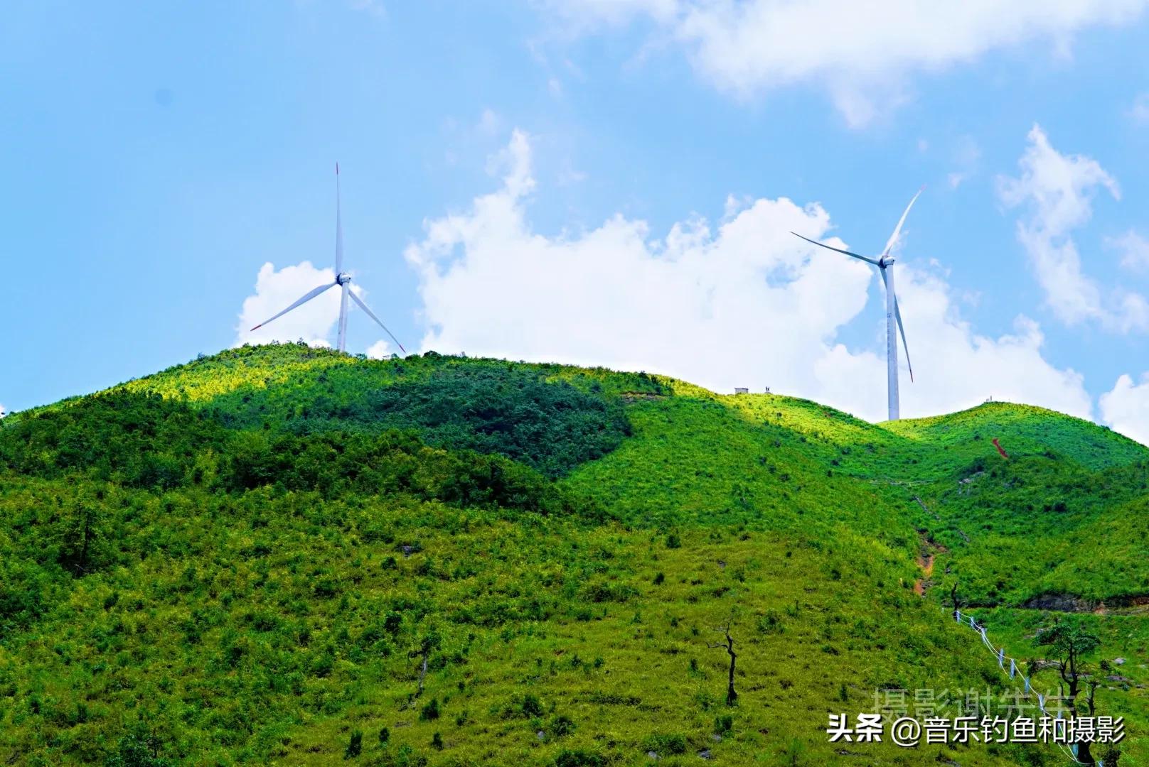 达到风力发电的风车那里就到达山顶了,一览众山小,万千大山的视角就出现了,山顶风很大,而且很凉爽,如果能带个帐篷过夜,再拍个星空和日出那就太棒了。