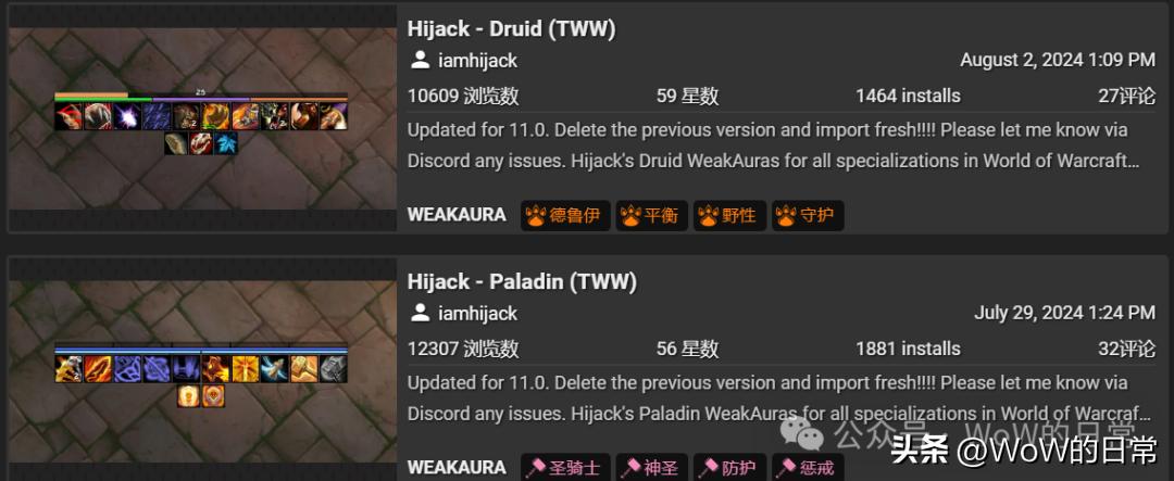 我的插件包里,集成的是国外知名主播Luxthos所做的全职业职业技能监控WA。