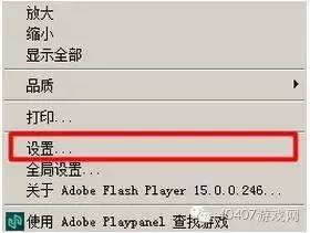 1. 在游戏首页中间点击右键,打开Flash的设置面板: