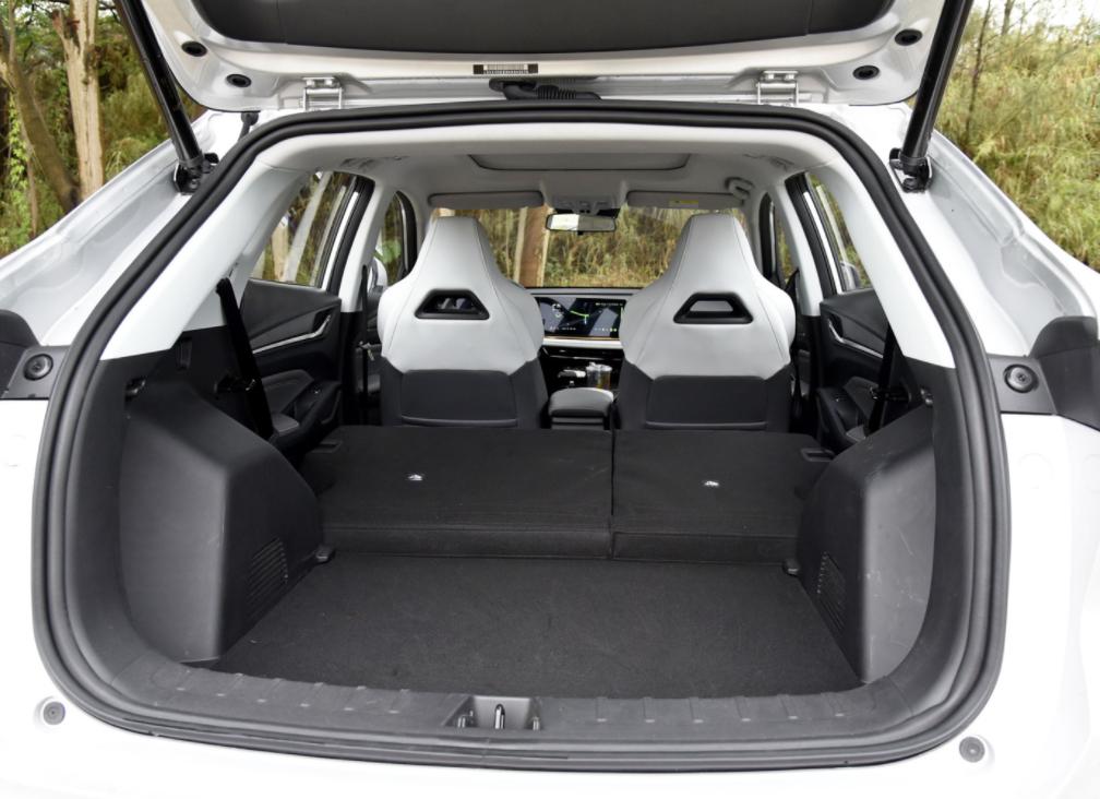 车身侧面的高腰线采用分段式设计,并分别与前后尾灯相连接,车门下方的低腰线整体上扬,看着确实更有力量感。车尾配备的扰流板中间,还镶有双阶脉冲高位灯,夜间行车的辨识度很高。赤焰双刃尾灯融入了书法顿笔的设计,走势看着就很流畅。尾门表层的线条也不少,黑色后保险杠处的层次也比较丰富,加上两侧还采用折角设计的银色装饰条勾勒,整个车尾既不缺乏运动气息,看着也比较有质感。