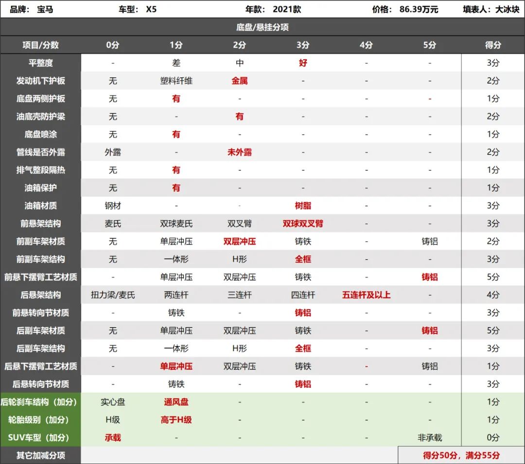 2021款宝马X5底盘评分