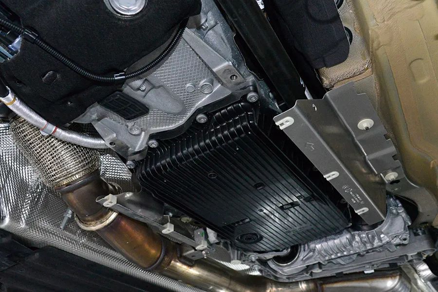 对一辆德国车来说,底盘平整是最基础的素质,这辆车的发动机下方配有一块双层铝合金护板,相当的厚实,对底部磕碰有一定的保护作用。