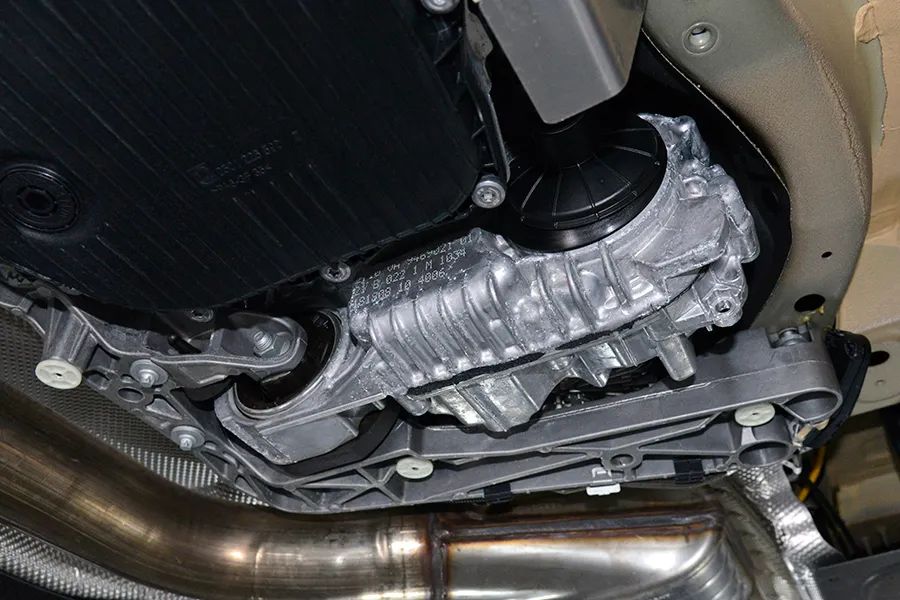 发动机后方是纵置的采埃孚8AT变速箱。