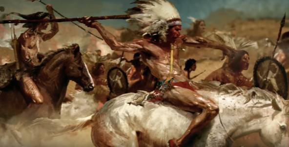 生活在美国西部的大平原区,骑术高超,向敌人冲锋的苏族骑兵。