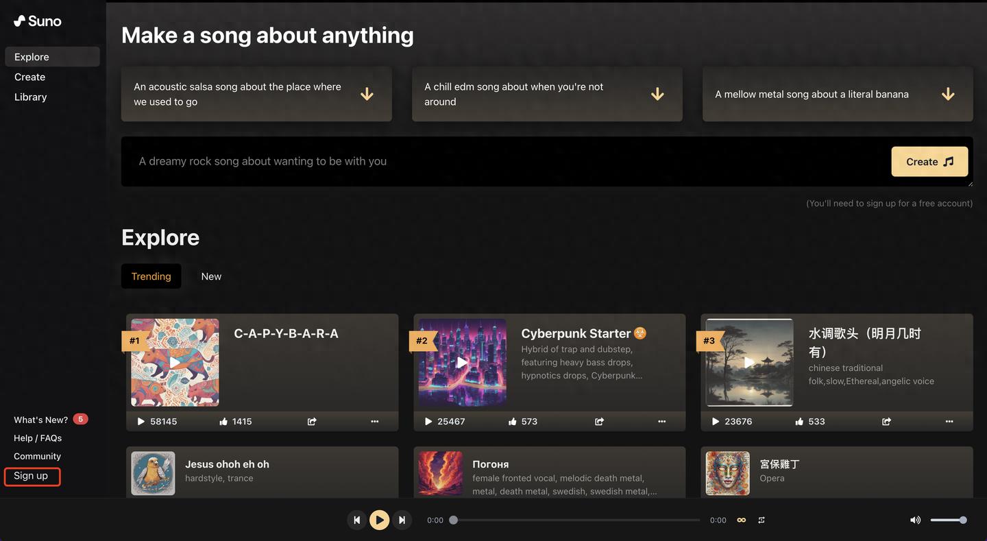 接下来作者就带大家演示一下如何注册和使用Suno,并且会两种创作歌曲的方法,这中间我们会用GPT和Suno强强联手一起创作一个歌曲。
