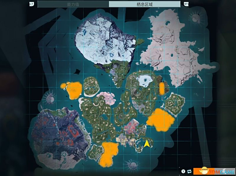 夜晚出现的帕鲁栖息地涂色为蓝色。