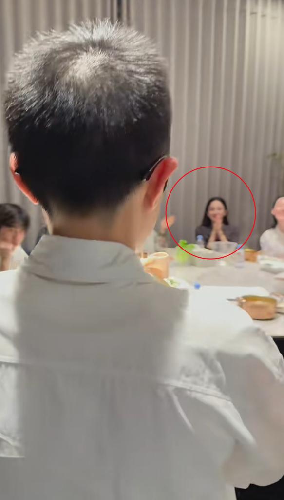 视频中的她穿着灰色T恤,头发随意披在脑后,看着并没有化妆脸上十分的素净,她和好友们一起鼓掌唱着生日歌,颇有种岁月静好的感觉。