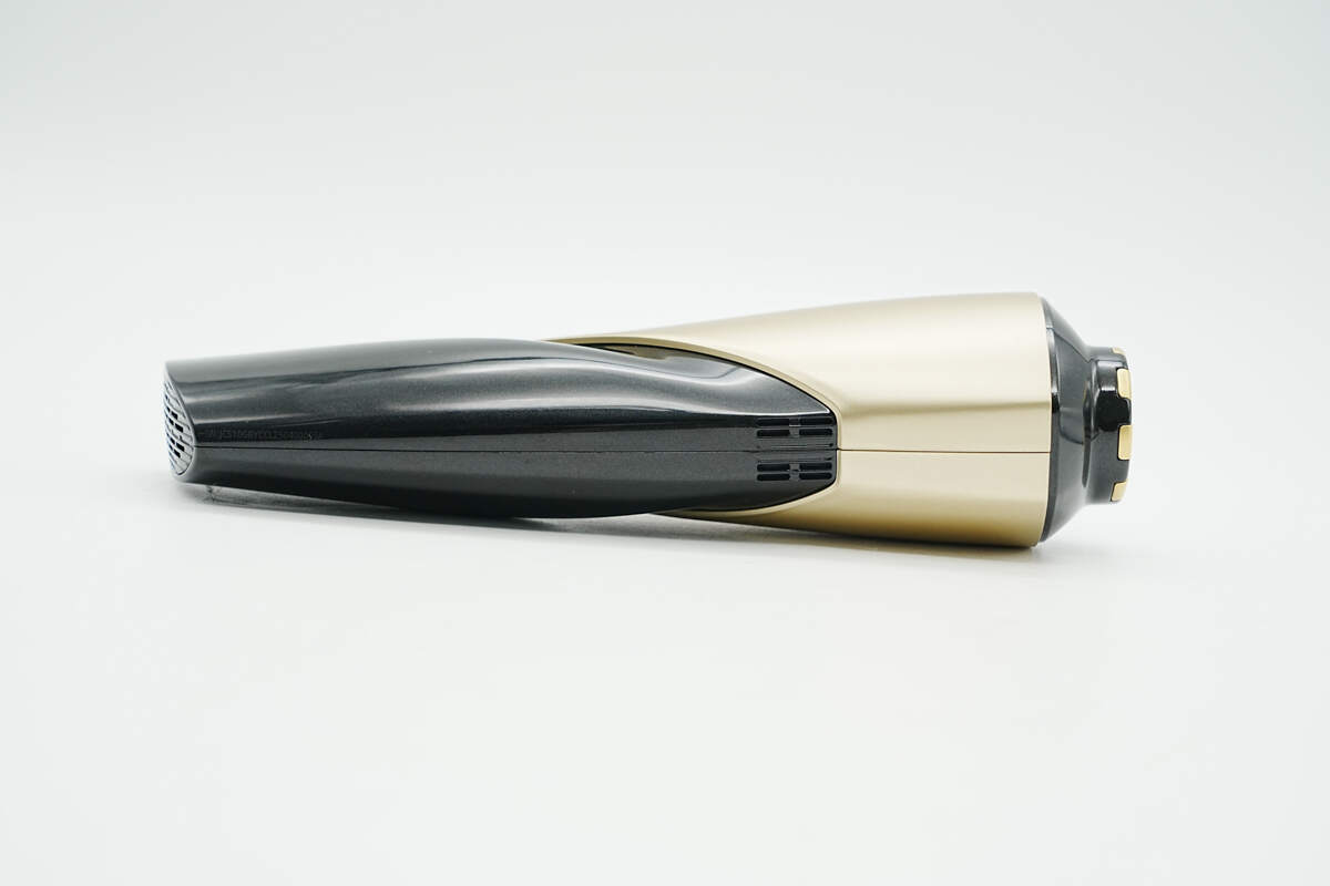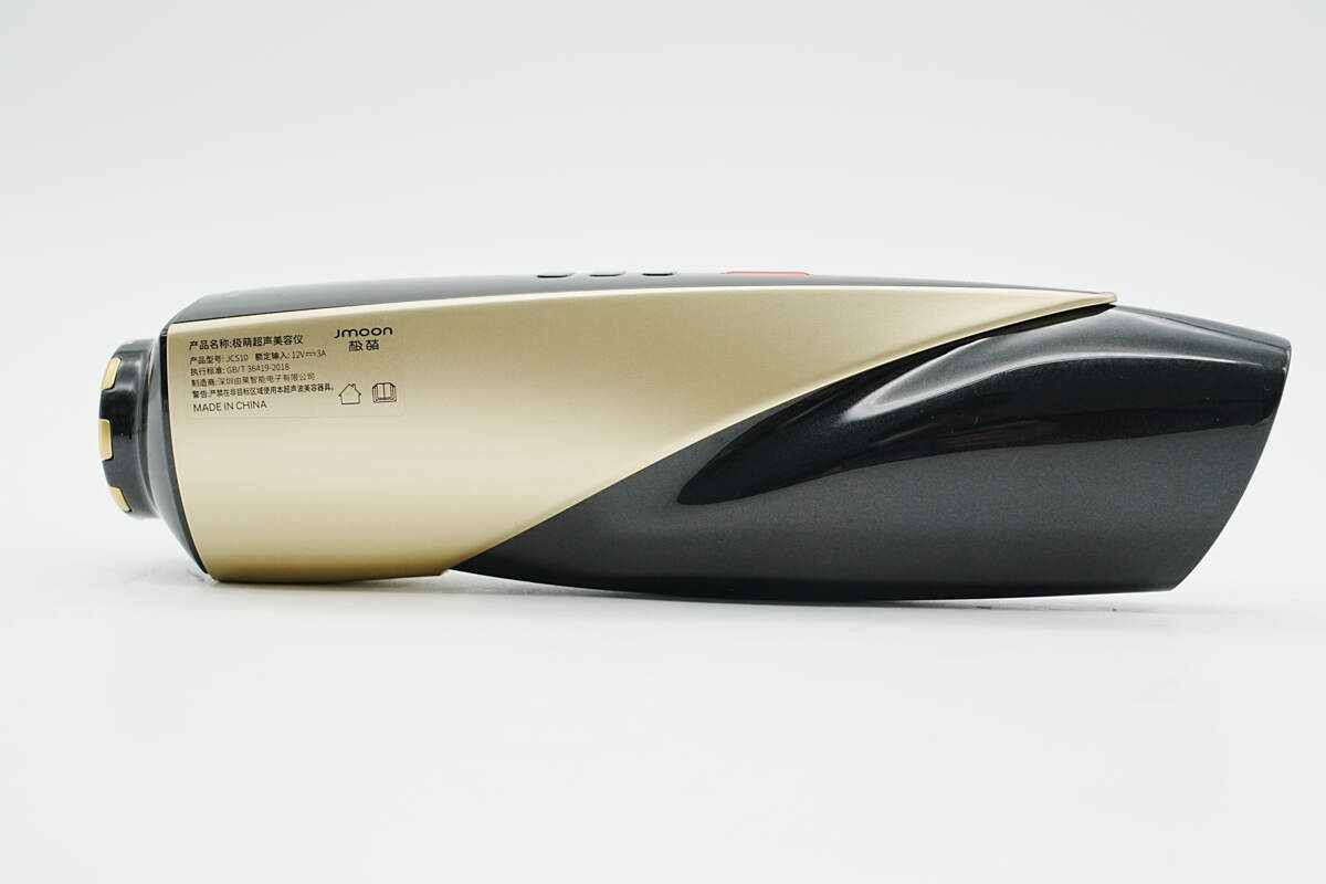极萌超声美容仪采用PC阻燃材质塑料外壳,主体机身黑色配色,采用钢琴烤漆工艺加星沙视觉效果结合设计,两侧还采用玫瑰金色面板装饰,整体美观档次感十足。