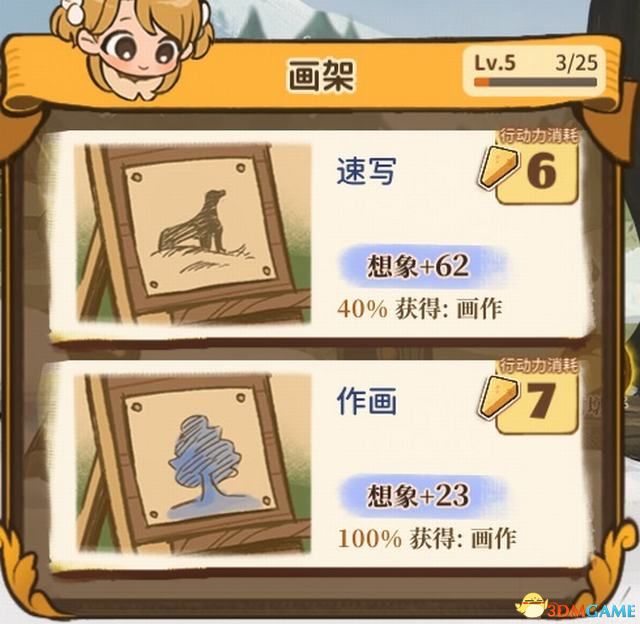 此地的主要功能为“体魄成长”和“想象成长”,对应的探索是划船和绘画。