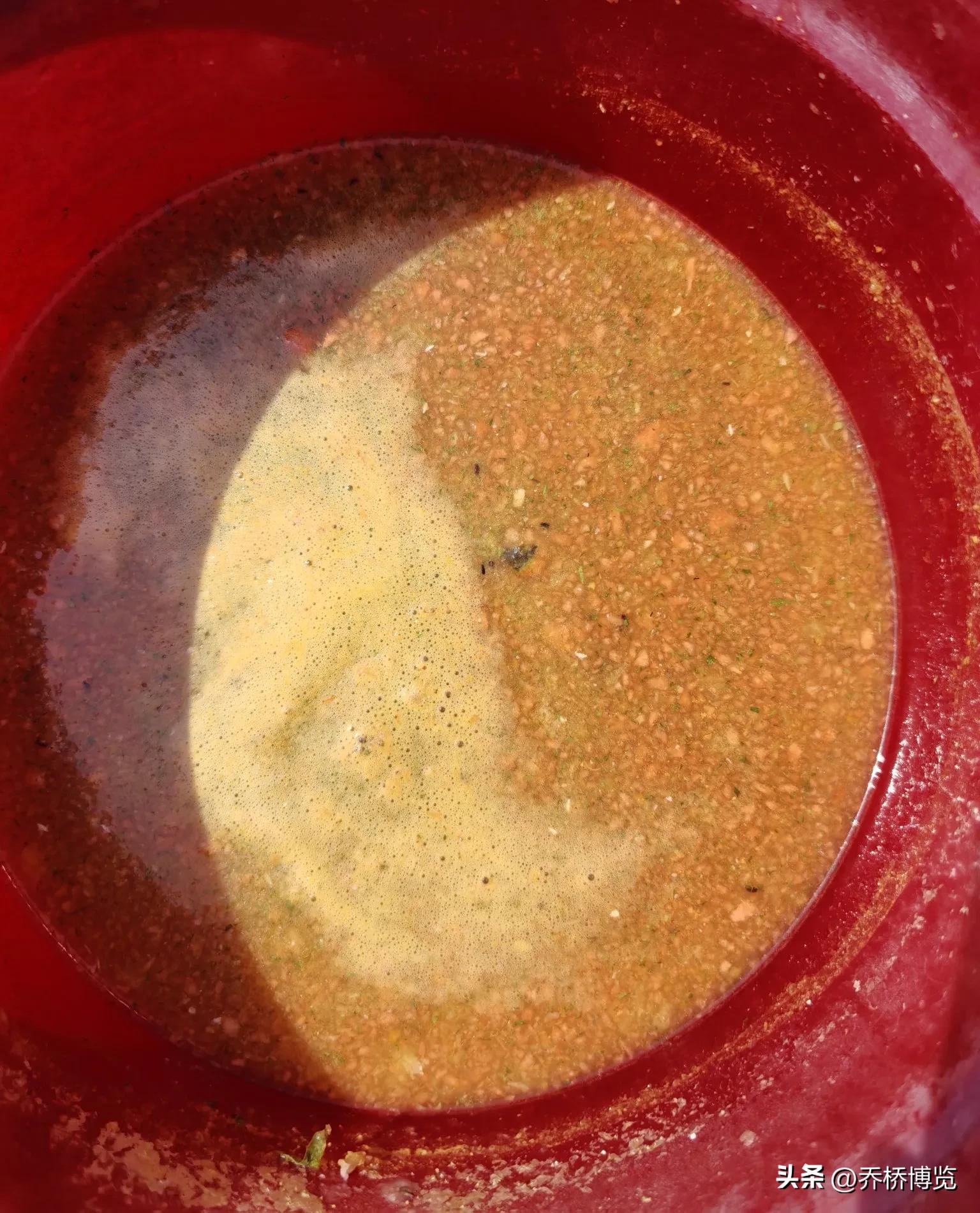 前期,大蒜返青前到前天,我已喷淋过三次叶面肥,都是多种材料复合酿发的桶沤肥。前天喷淋的叶面肥,是专供促苔肥,由果皮果瓤、黄豆、鱼虾杂蛋壳为原料兑水粉碎后装桶沤酿,取汁按2:8比例兑水,在半上午时喷淋叶面茎根部。这次的叶面肥,尤须保证无异臭味,反倒有果皮和黄豆的甜香味。这样,蒜苔品质和口感都会更上层级。初见苔尖,就用同样材料沤酿的肥渣肥液,兑一半水,于半上午时淋施畦面,待肥液渗入地下,接着喷淋一遍匀肥水,又保证给肥匀溜,又可让肥液深渗地下,供根部和鳞茎缓缓享用。