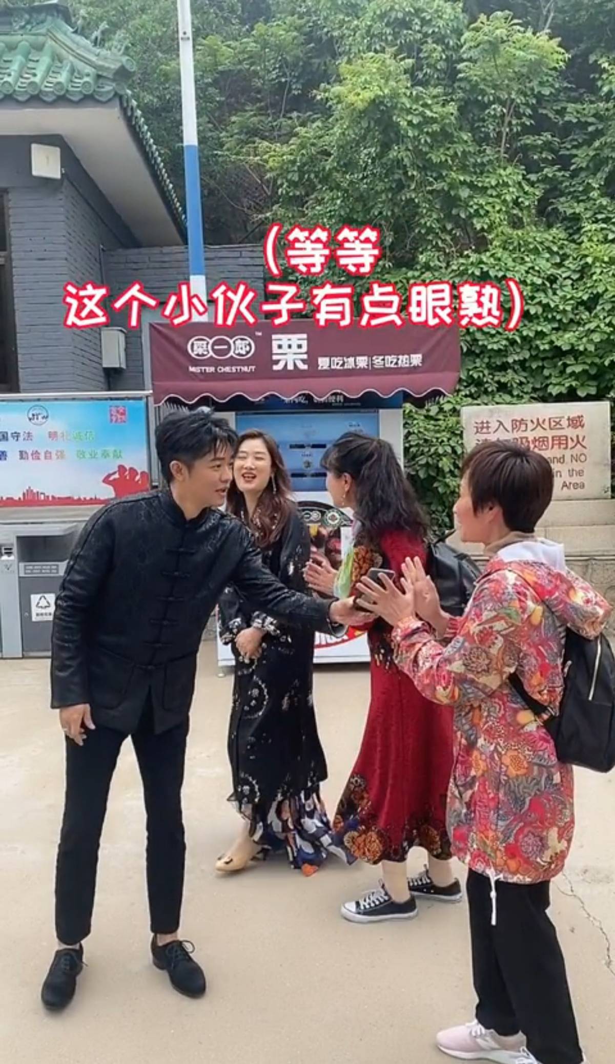她们很兴奋地要求合照,不过却把另一个小伙子认成了曾毅,真正的曾毅却成为“工具人”,帮助大家拍照。