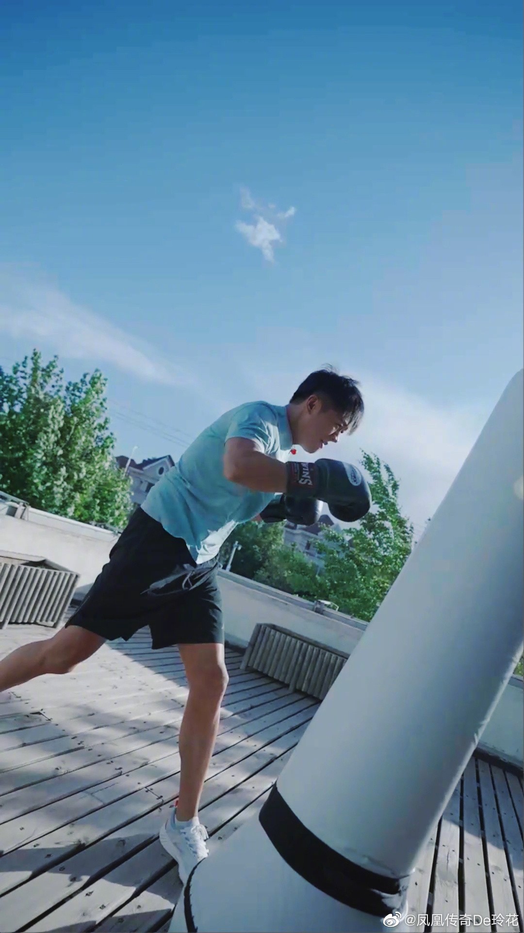 41岁的曾毅似乎更喜欢力量型的运动,他还独自练习了打拳,动作很有力量感,肌肉也更加明显。