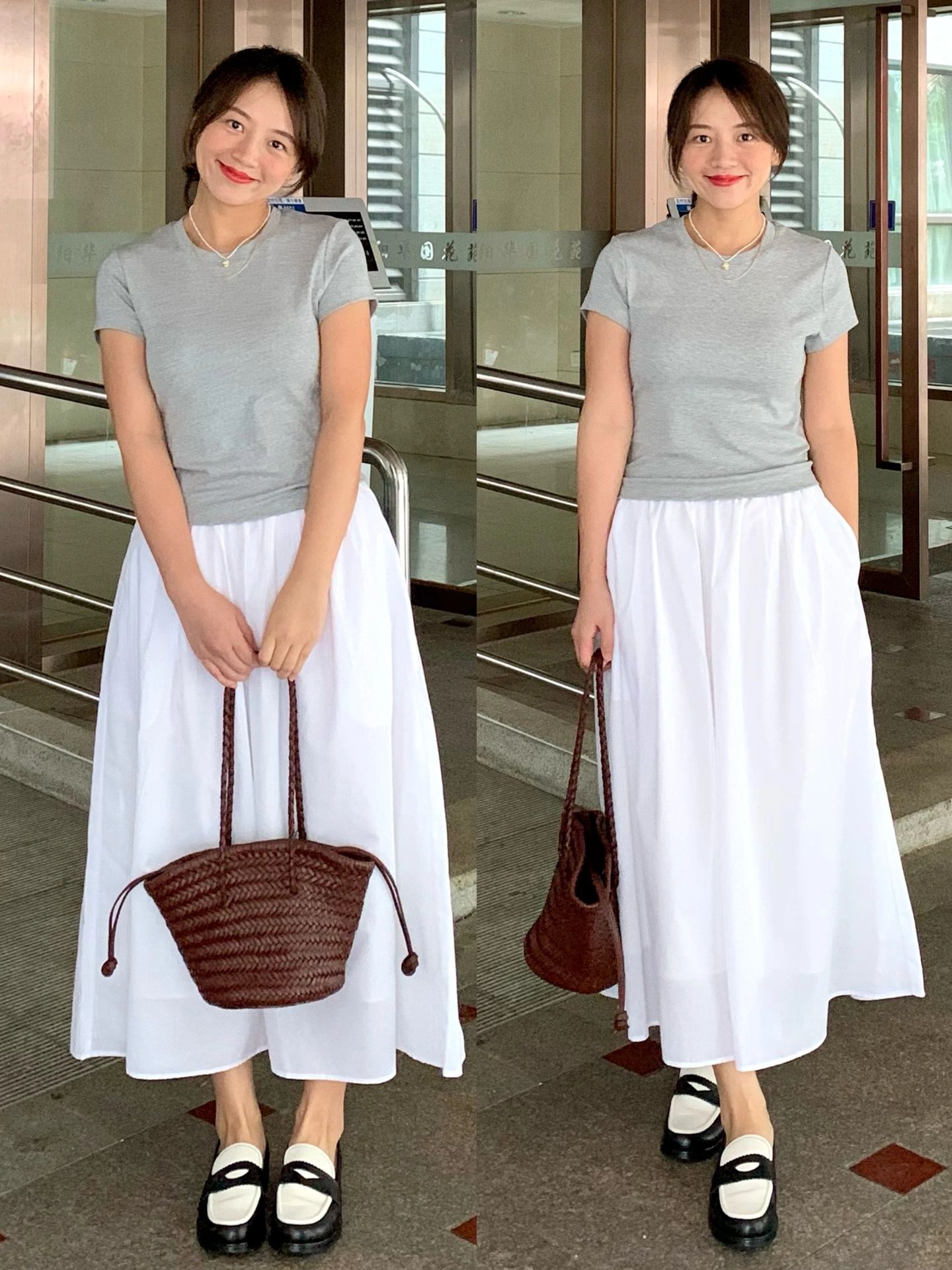 像博主一样,选择宽松版型的百褶裙上身效果最nice,腰臀比没问题的姐妹,推荐选择白色A字形半身裙,小腿肌肉发达需要遮一遮的姐妹,推荐选择上紧下松的鱼尾百褶裙。