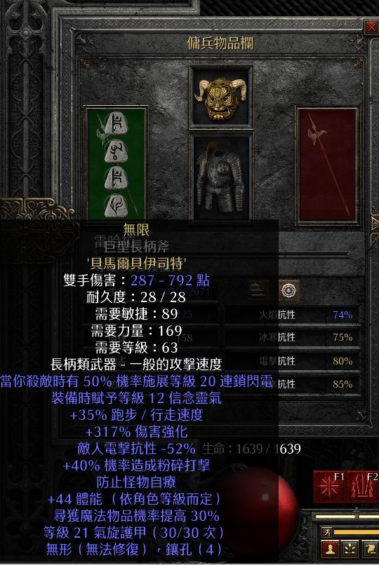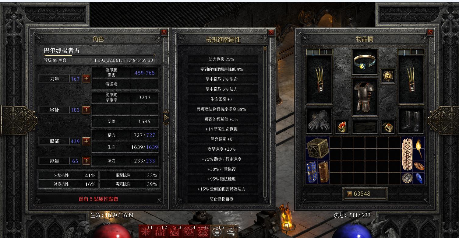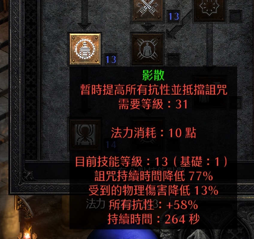 由于学了影散技能,可以加到58点的全抗,背包里可以少带几片抗性板,节省了很多空间,可以用来捡东西。