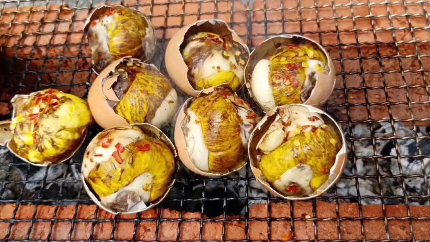 炸完后的毛蛋看着非常的恐怖,有的小鸡的头就在外面露着,上面还有经油炸后变黑的毛发,看着让就人汗毛之立。
