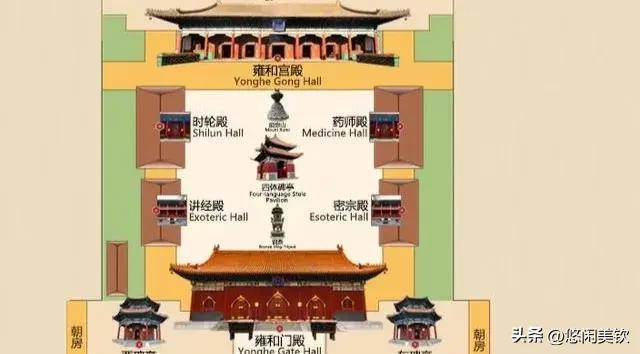 雍和宫由整体结构。由南到北: