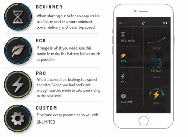 新手、经济、专家分别对应不同阶层不同需求的滑板手,当然你也可以通过移动应用来定制自己的模式。目前该电动滑板套组正在众筹平台Kickstarter上以408美元的早鸟价众筹,目前已经筹集11万美金,目标为26.2万美金,如果众筹成功后,公司预计于2017年3月发货。